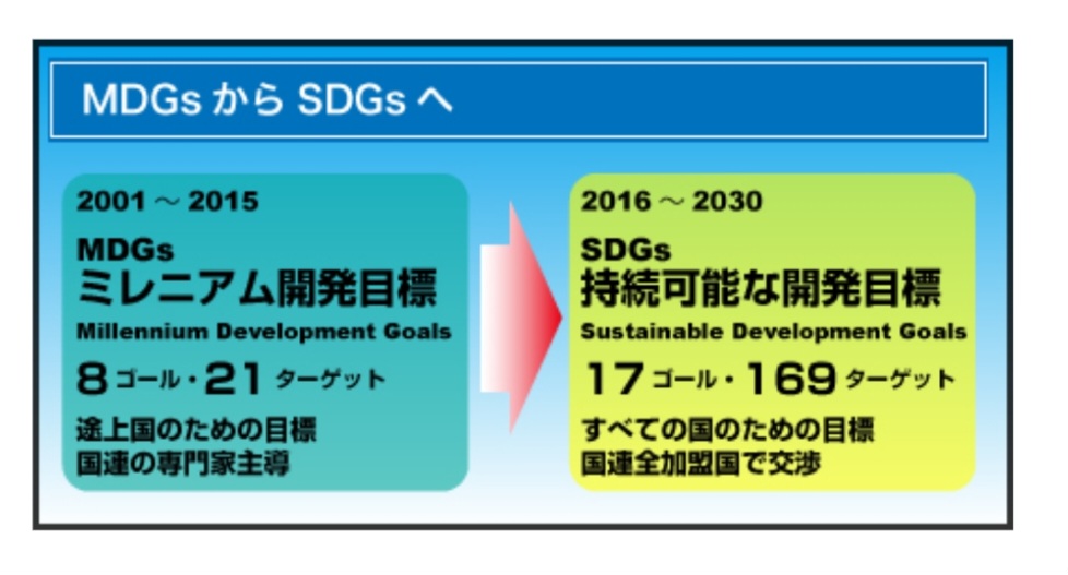 そう思うと国際的にSDGsから取り組み始めているかと思っていましたが、2001年からMDGsとして国際的に取り組んでいたのですね!