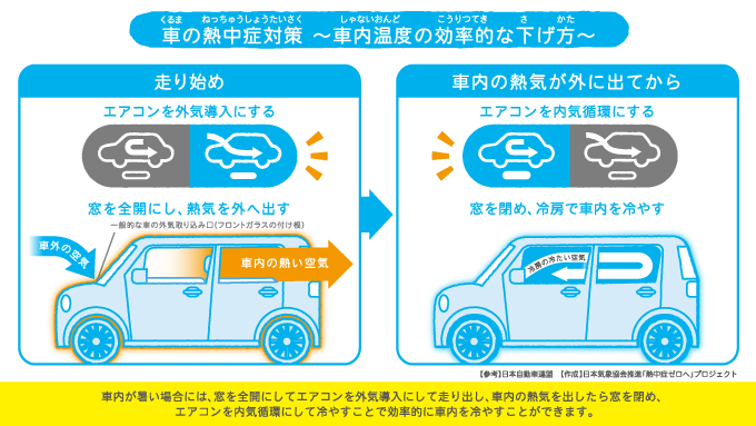 車内は熱がこもりやすく、車内の温度は外気温よりも高くなることがあります。