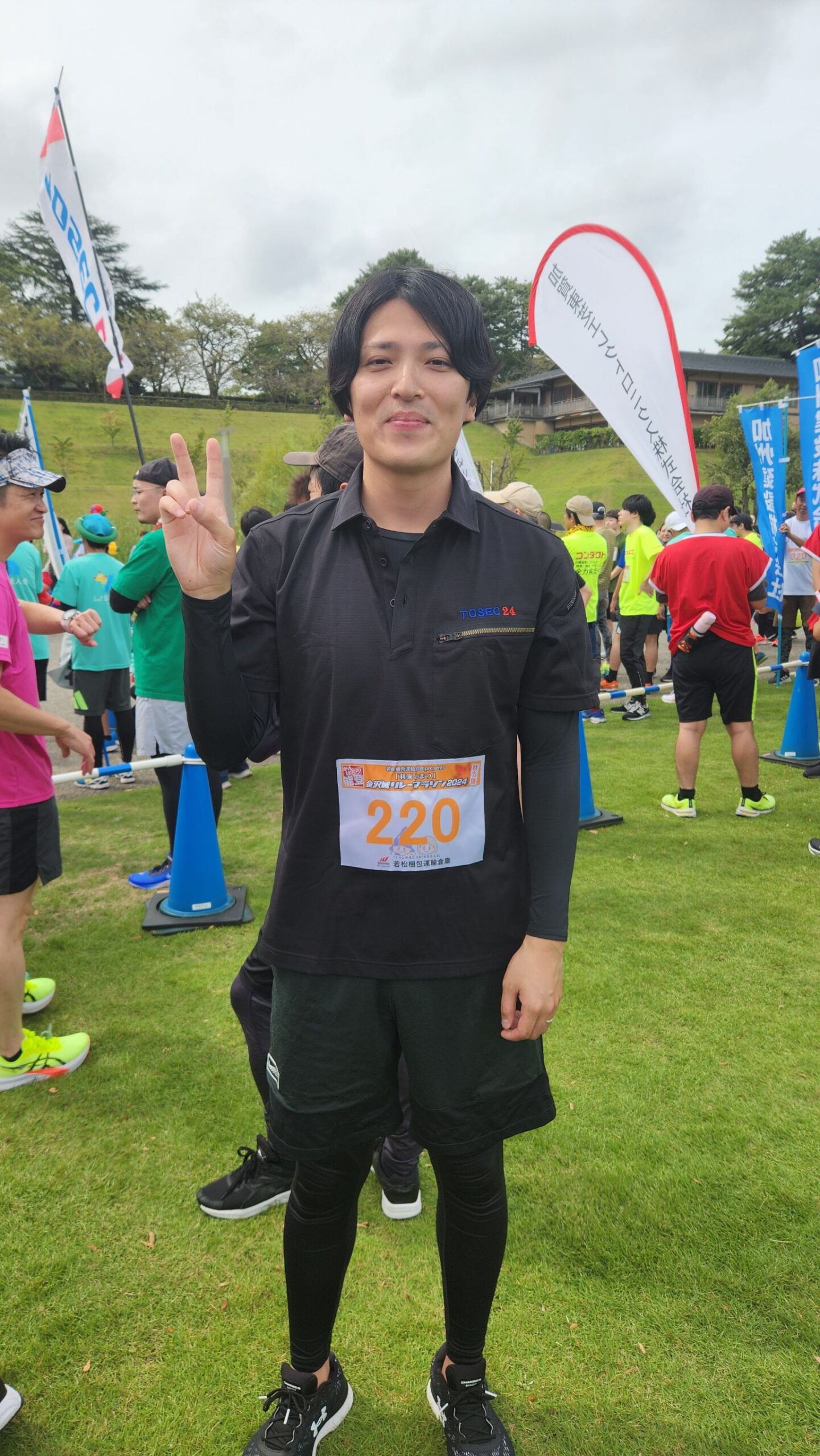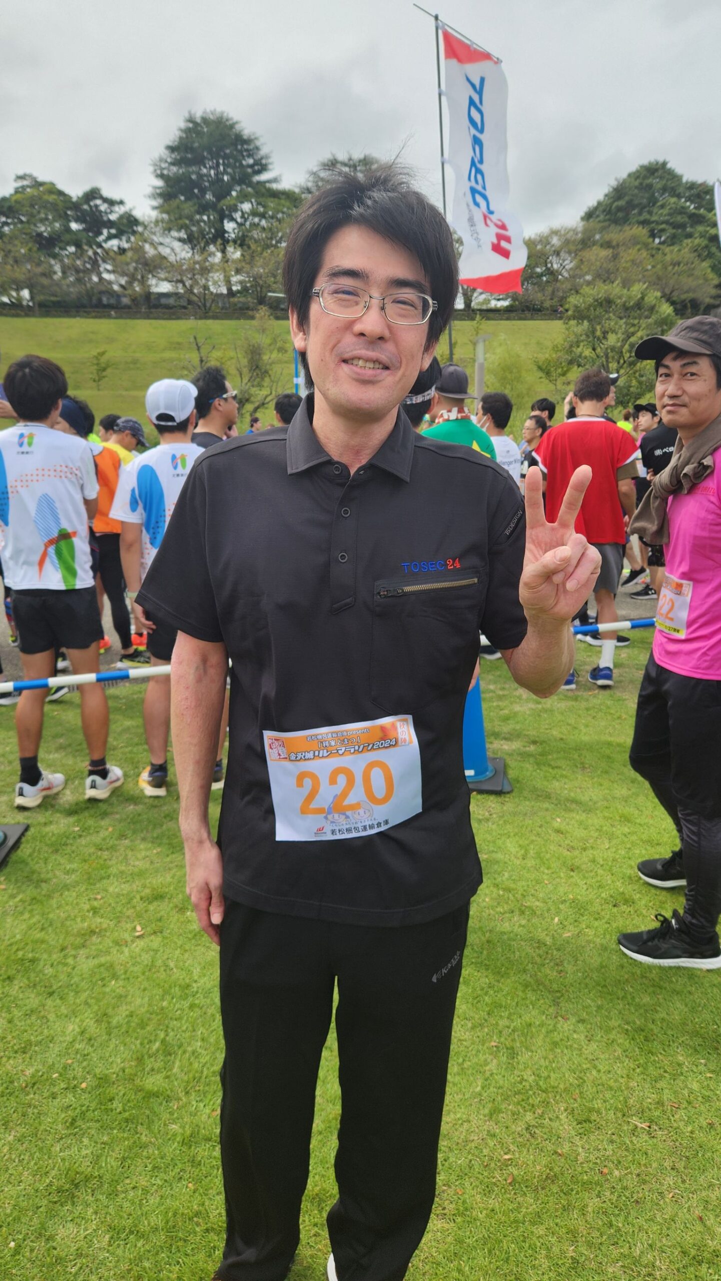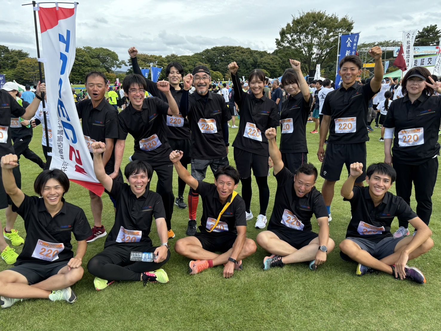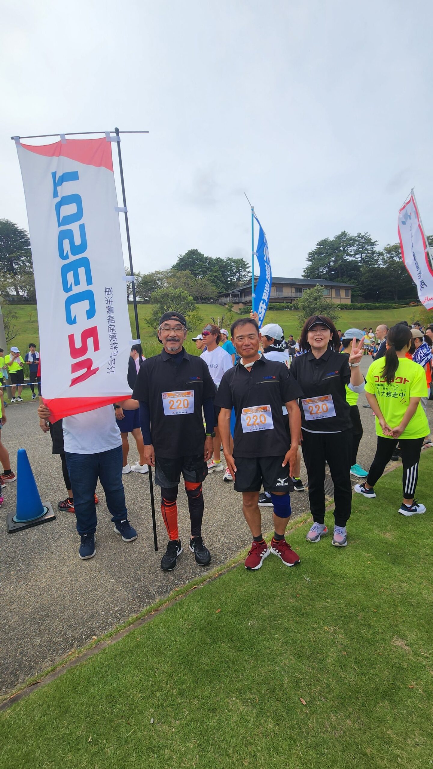 1チーム上限22名構成され、リレー方式で1人1.9㎞を走り、22人で合計約42㎞を4時間以内のゴールを目標す、職場部門に参加しました。