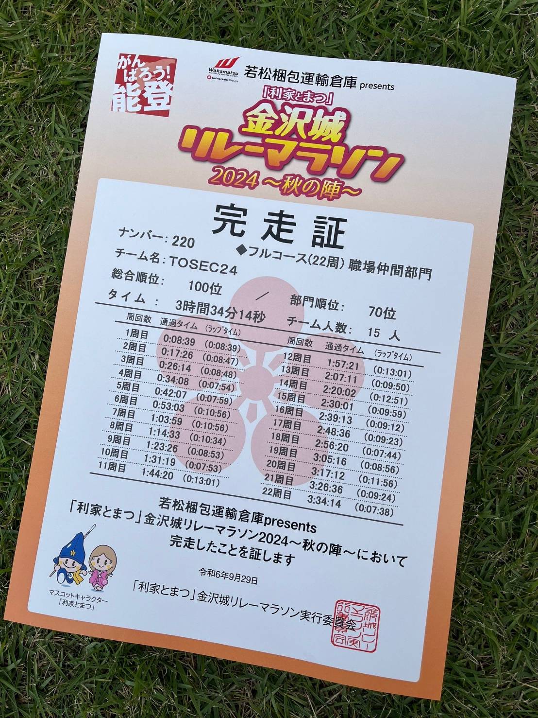 そこで今回は、TOSEC24連合チームで9月29日(日)に行われた金沢城リレーマラソンに参加してきました。