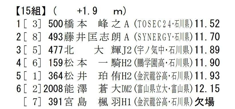 橋本 男子100m 11秒49(+1.6)