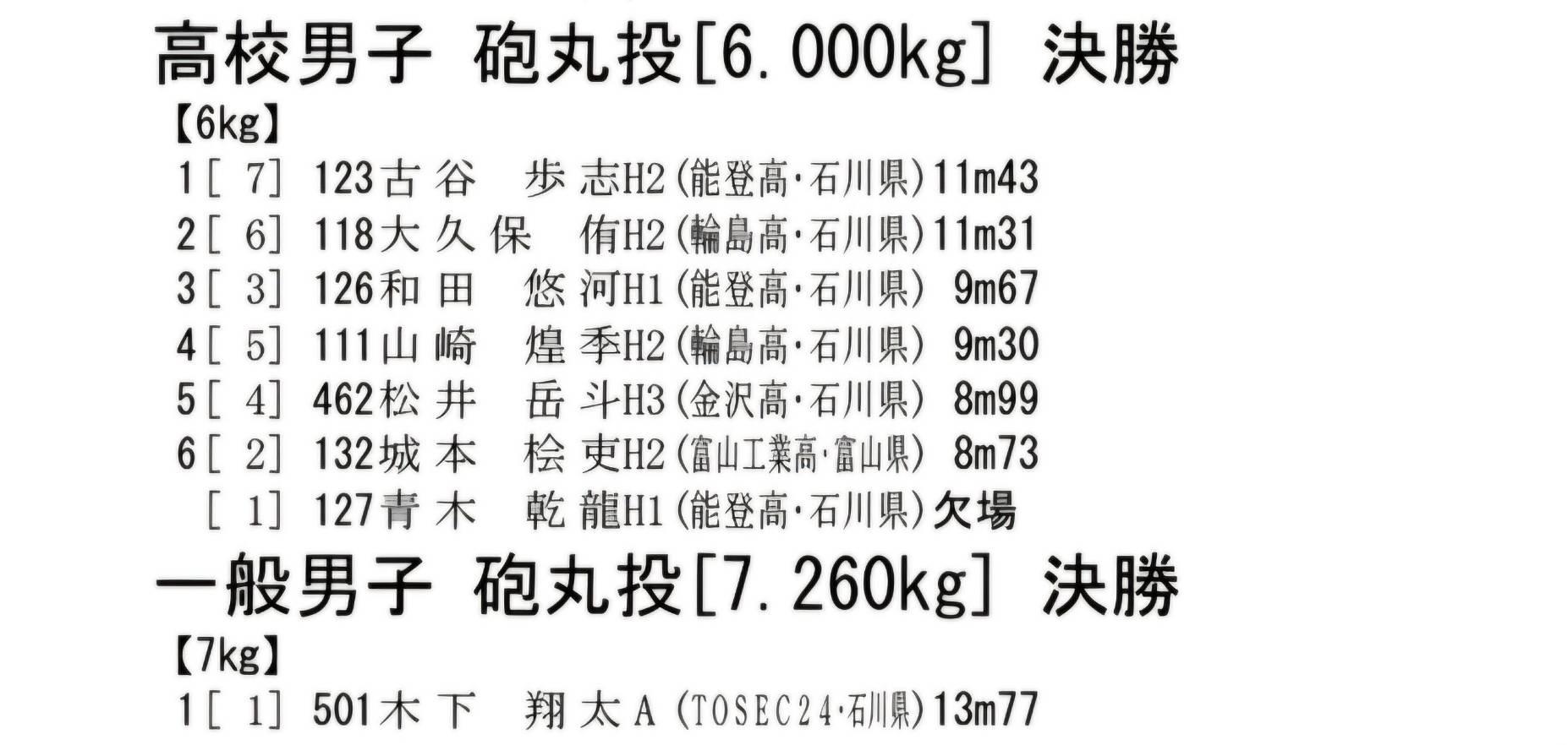 木下 男子砲丸投げ 13m77㎝ 👑1位
