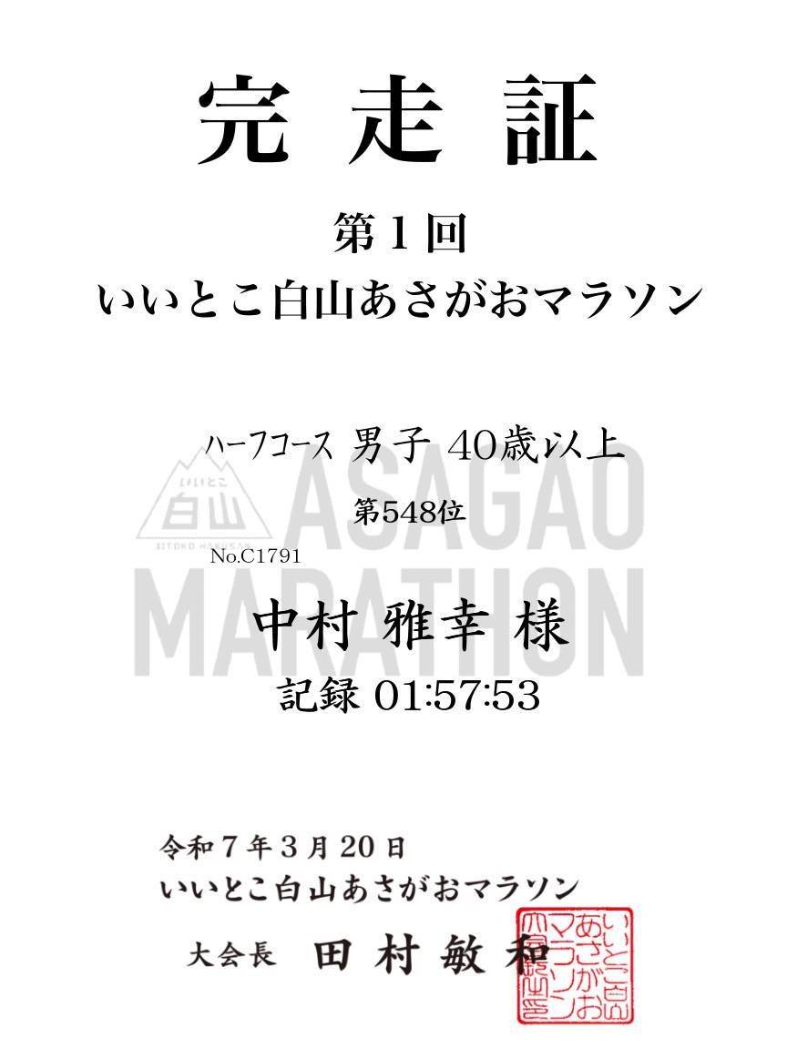 中村 ハーフマラソン 1時間57分53秒