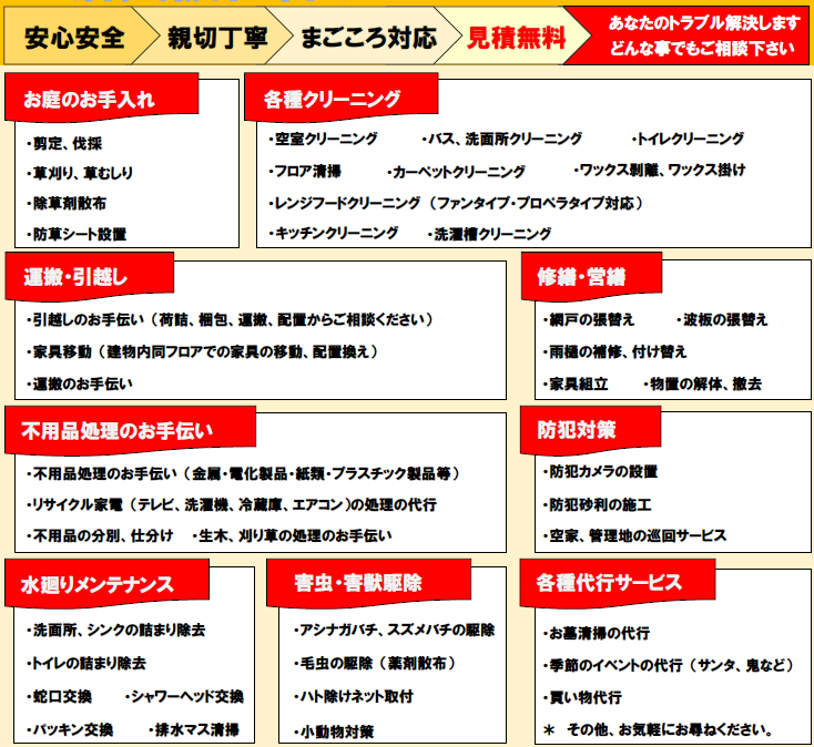 みのまわりでの、お悩み、トラブル等がありましたら一度ご連絡下さい。
